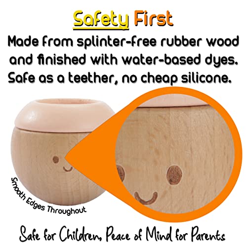 🧡 Safe Baby Toy: Constructed from splinter-free rubber wood, toxic-free material and finished with water-based dyes this set is safe for toddlers to chew and make excellent teethers for babies 6 months. Safe for children, peace of mind for parents.
